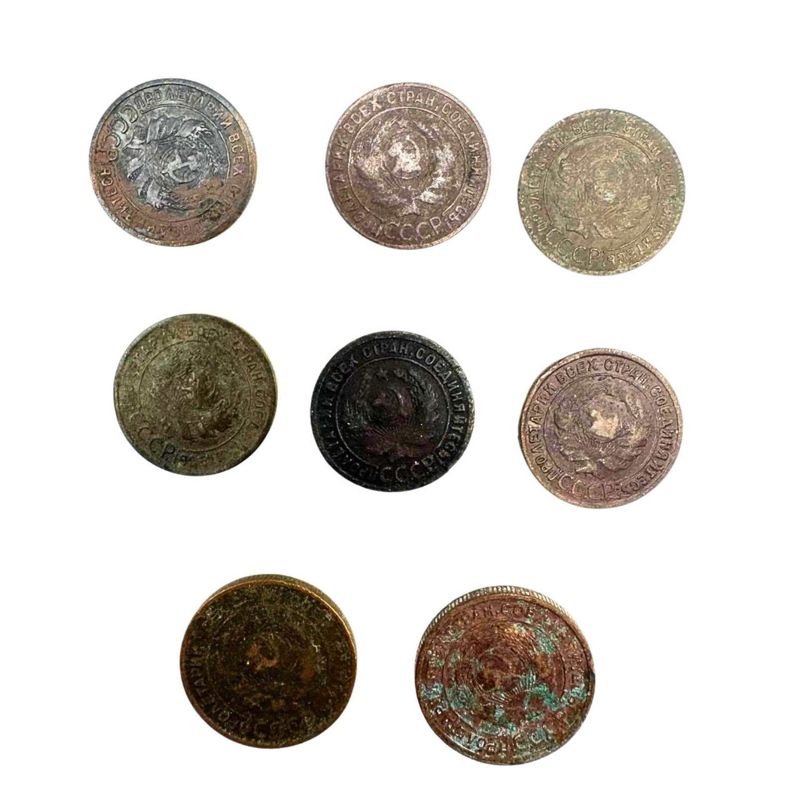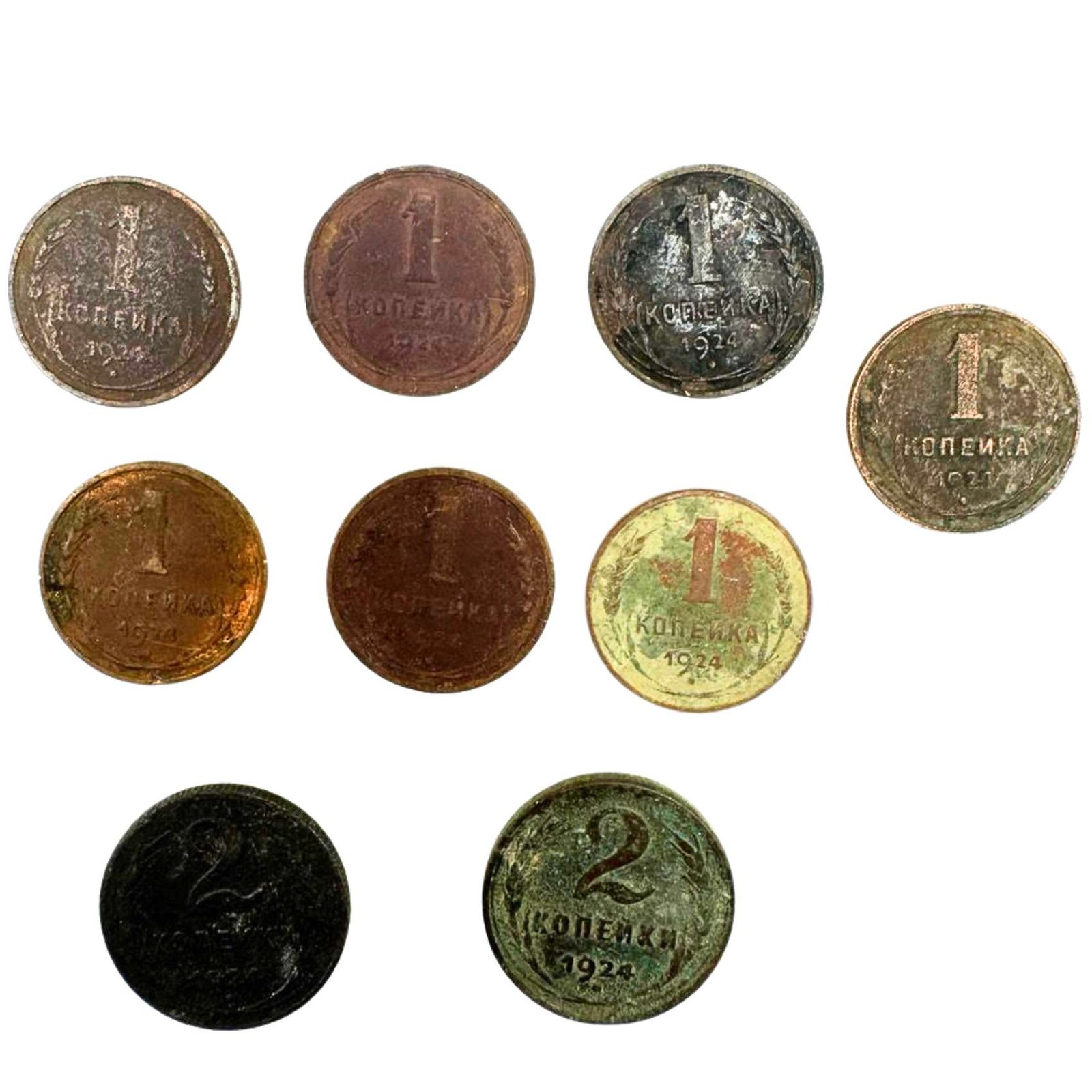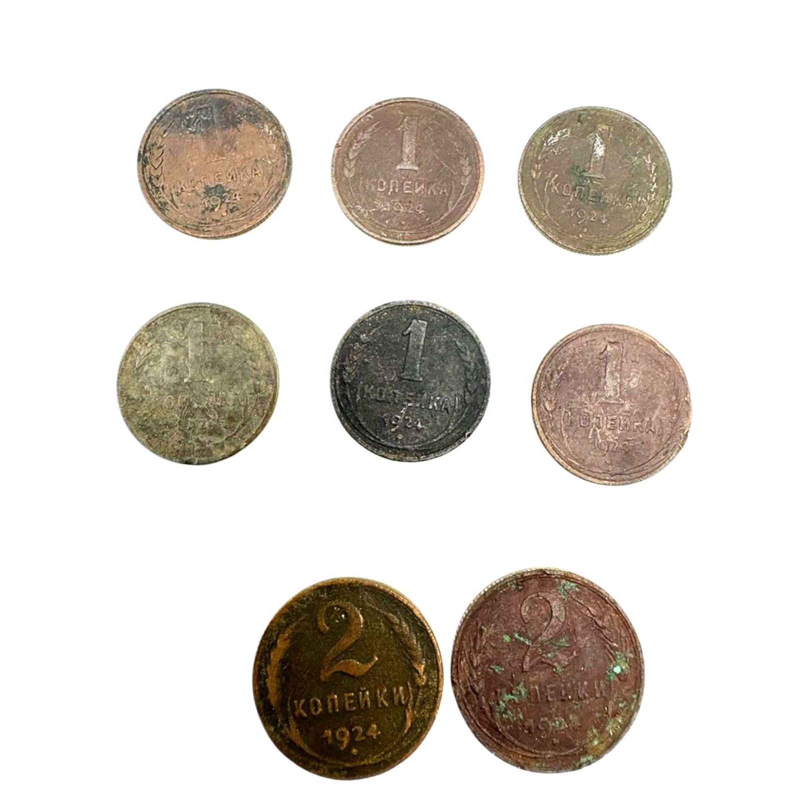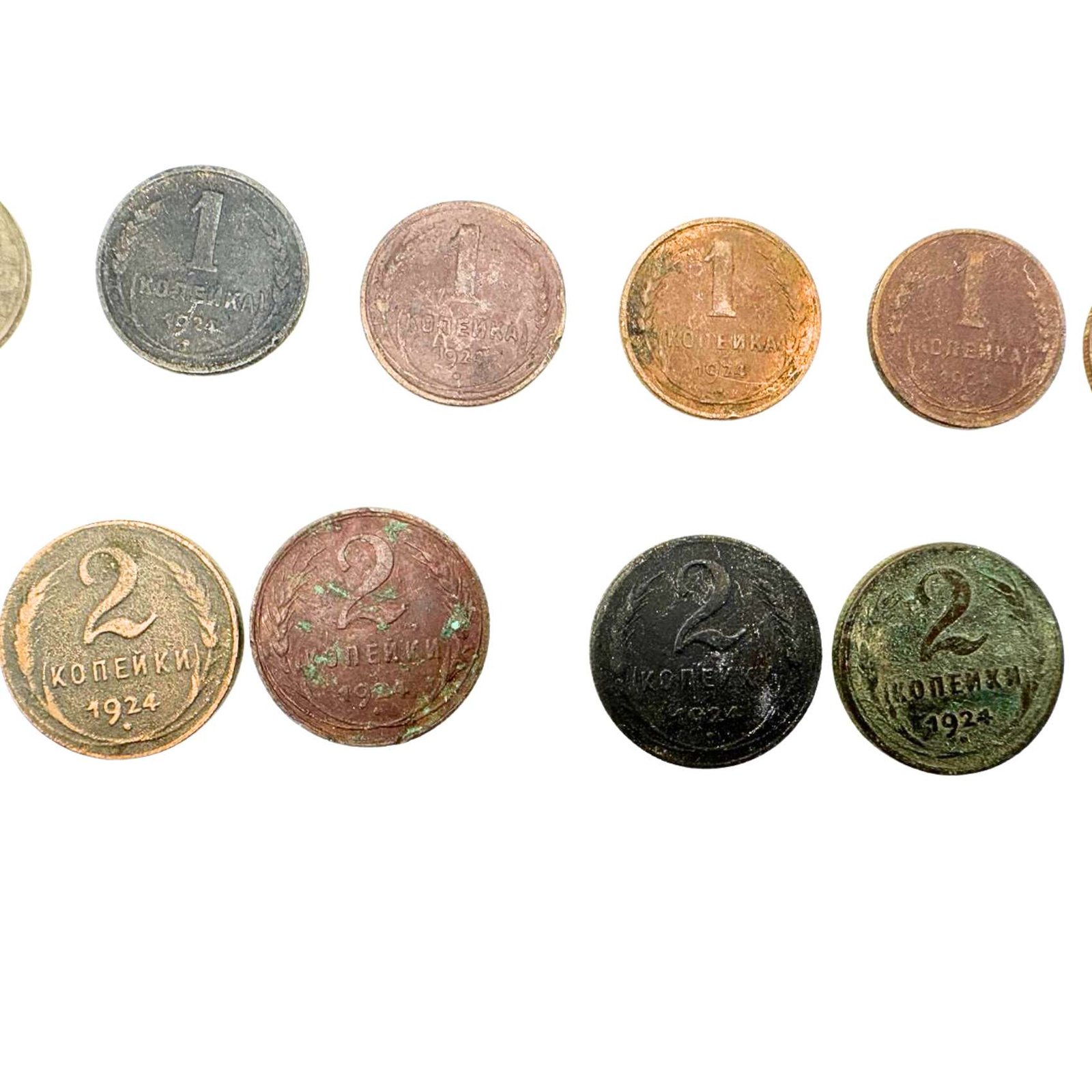 1 kopek 1924 Soviet coins 2 kopeks coin collection lot collectible USSR coins old Russian currency Russian kopek coins Soviet kopecks Soviet numismatics USSR coins lot vintage Russian coins