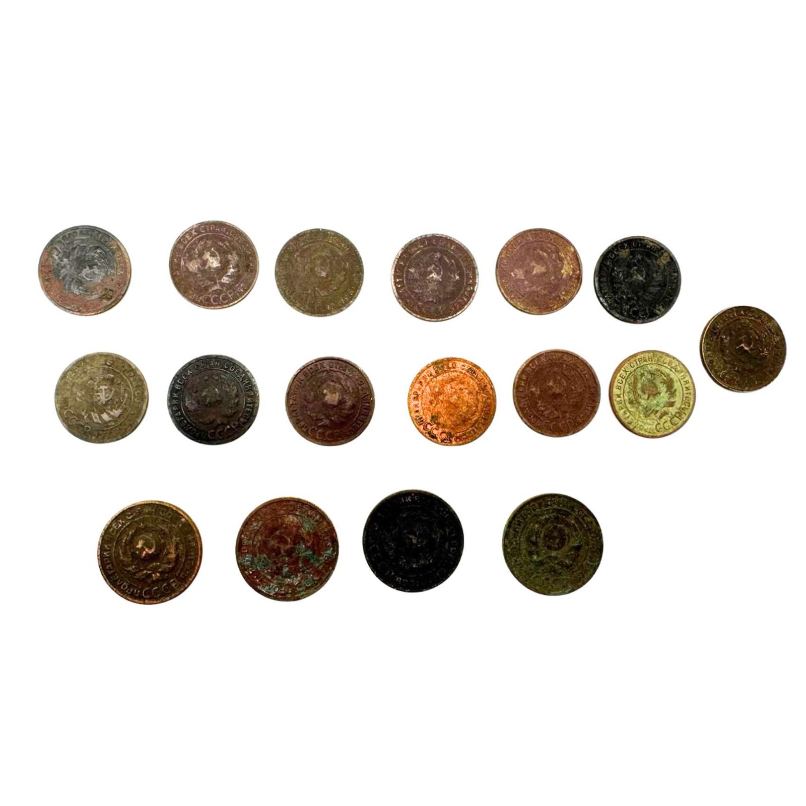 Lot of 17 Vintage Soviet Russian Kopecks Coins 1-2 Kopeks USSR 1924 Collectible