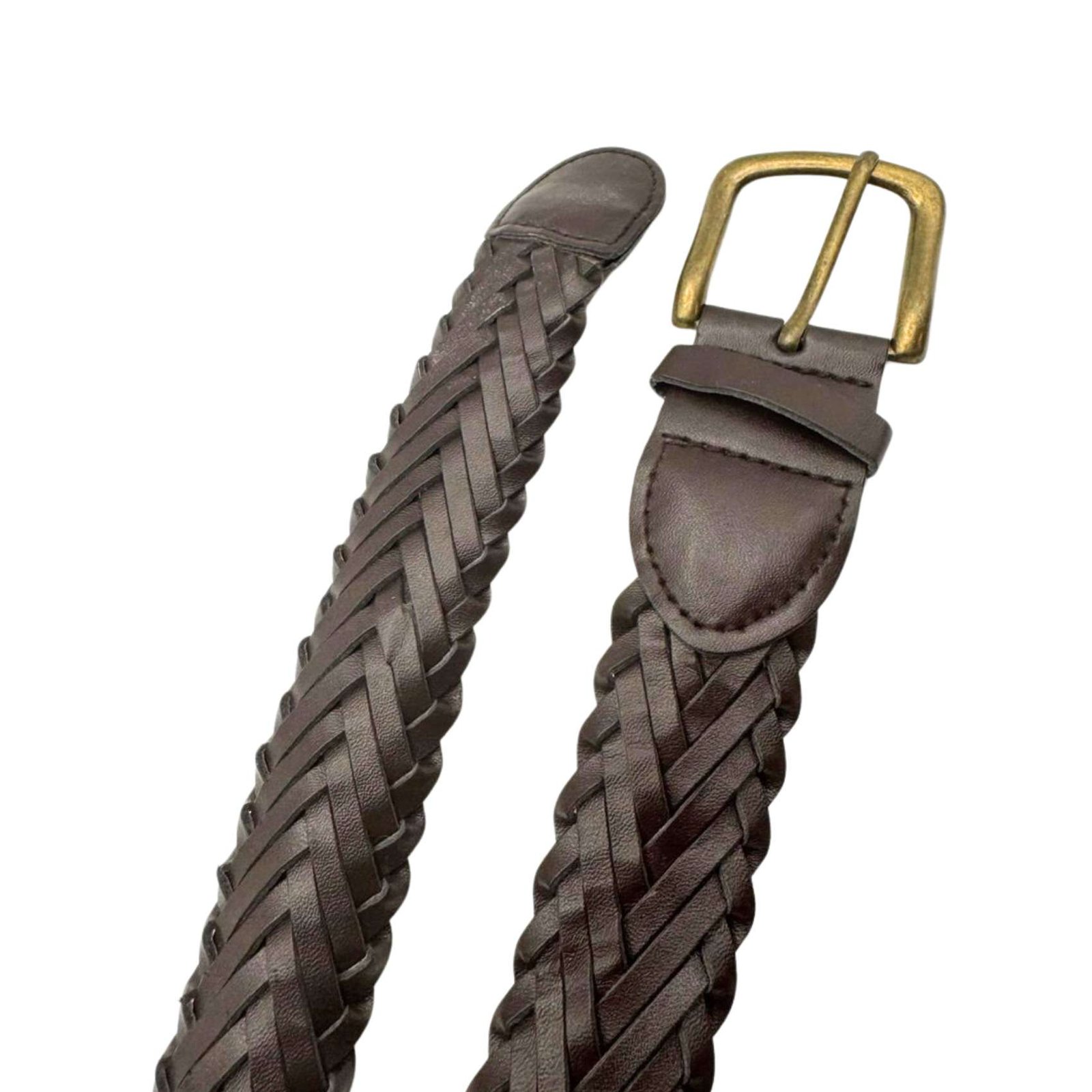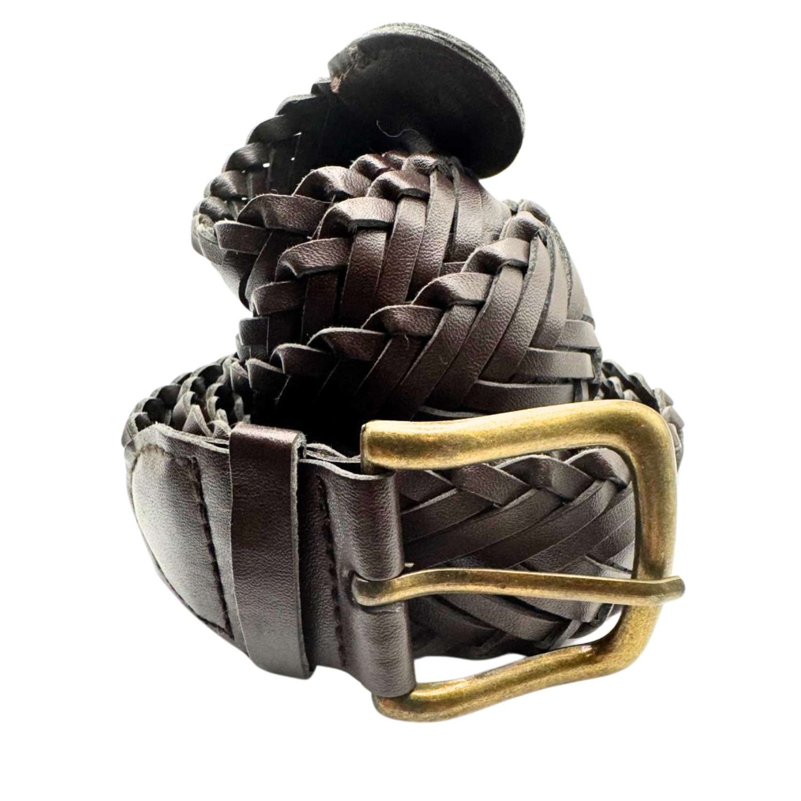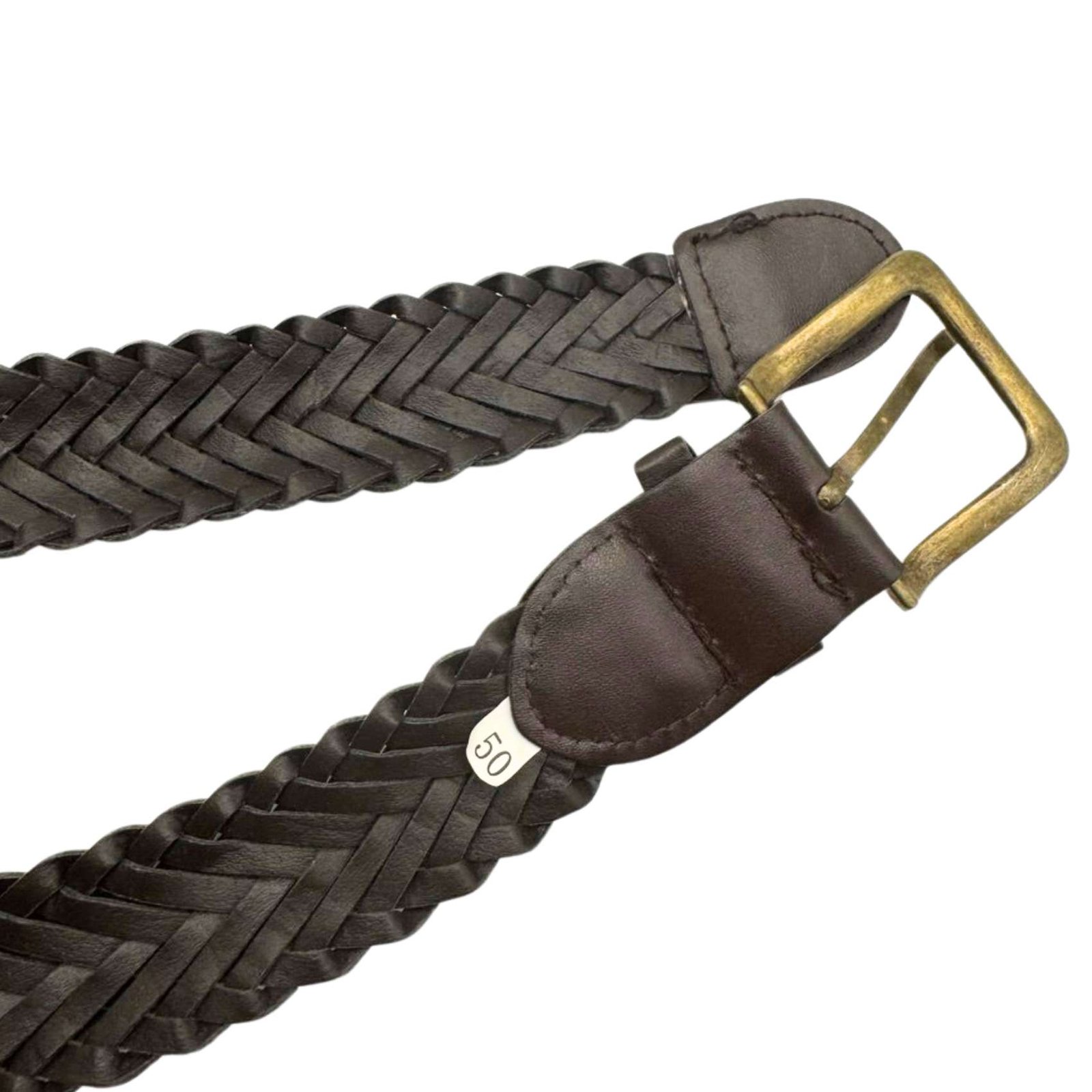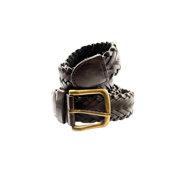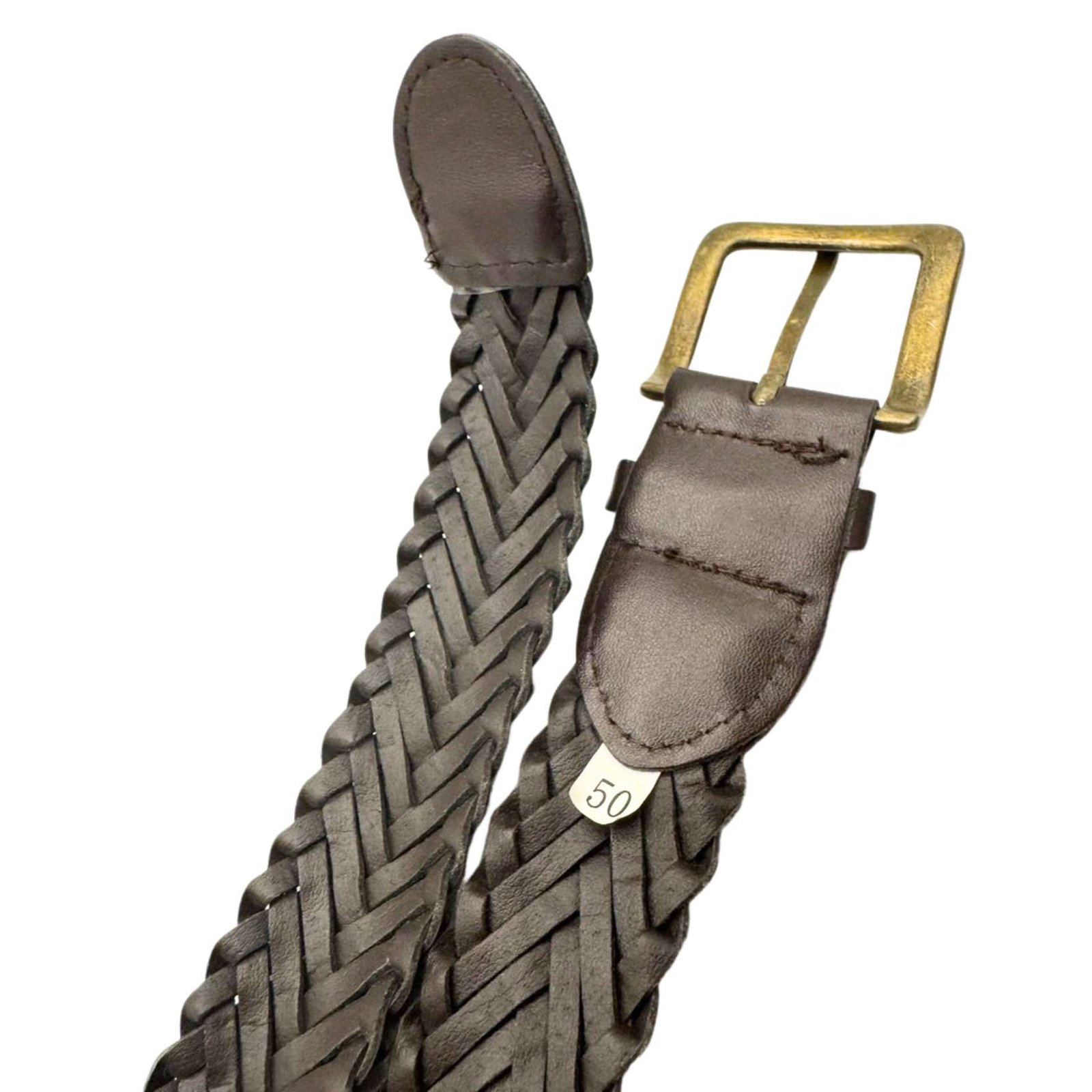 Original Vintage Genuine Braided Leather Braided Brown Belt Buckle Length 62"
