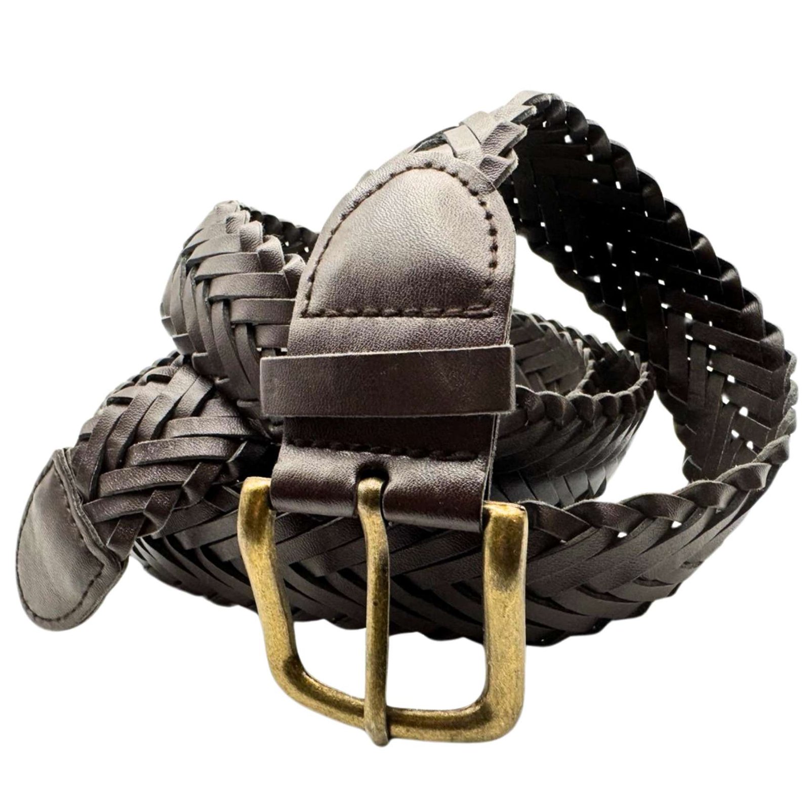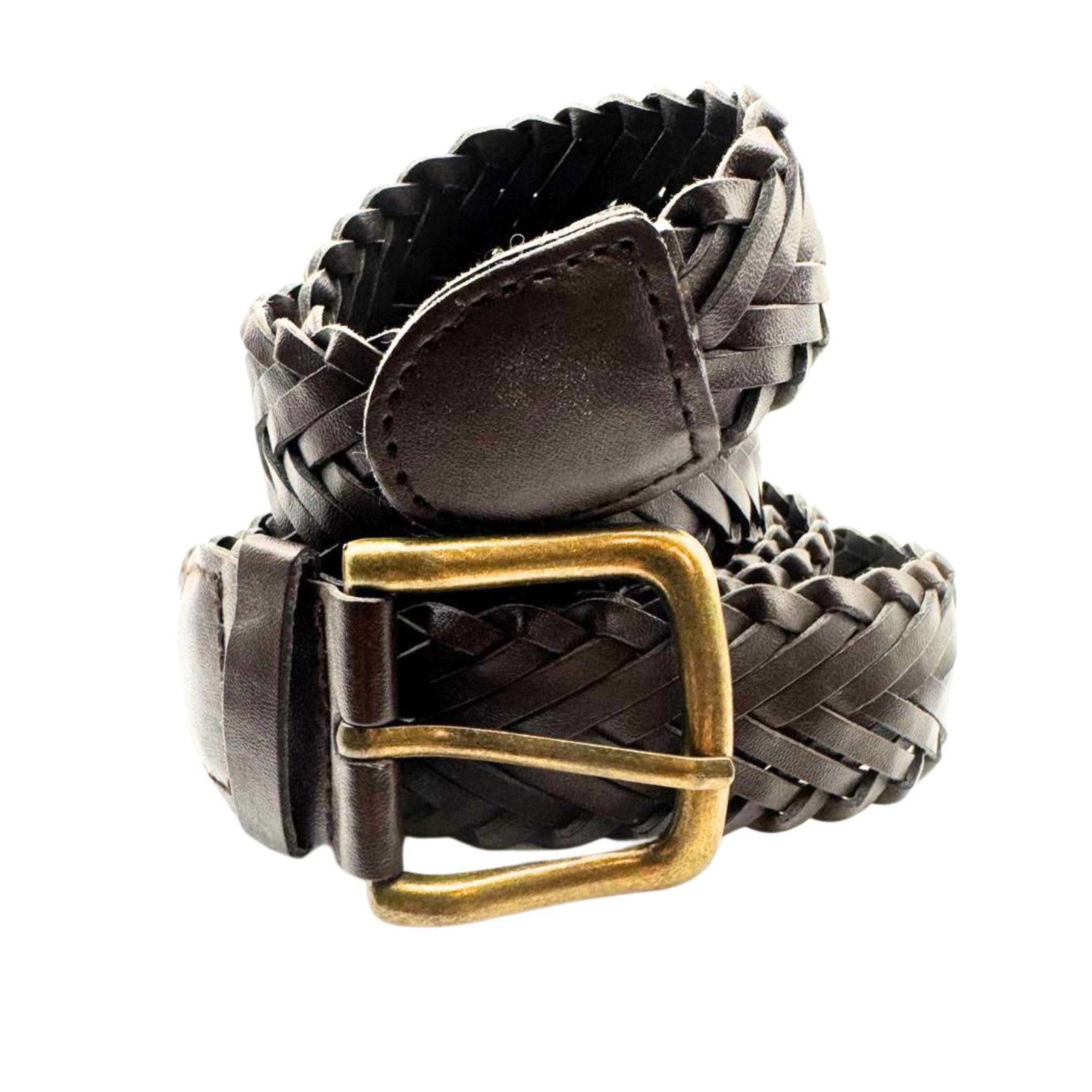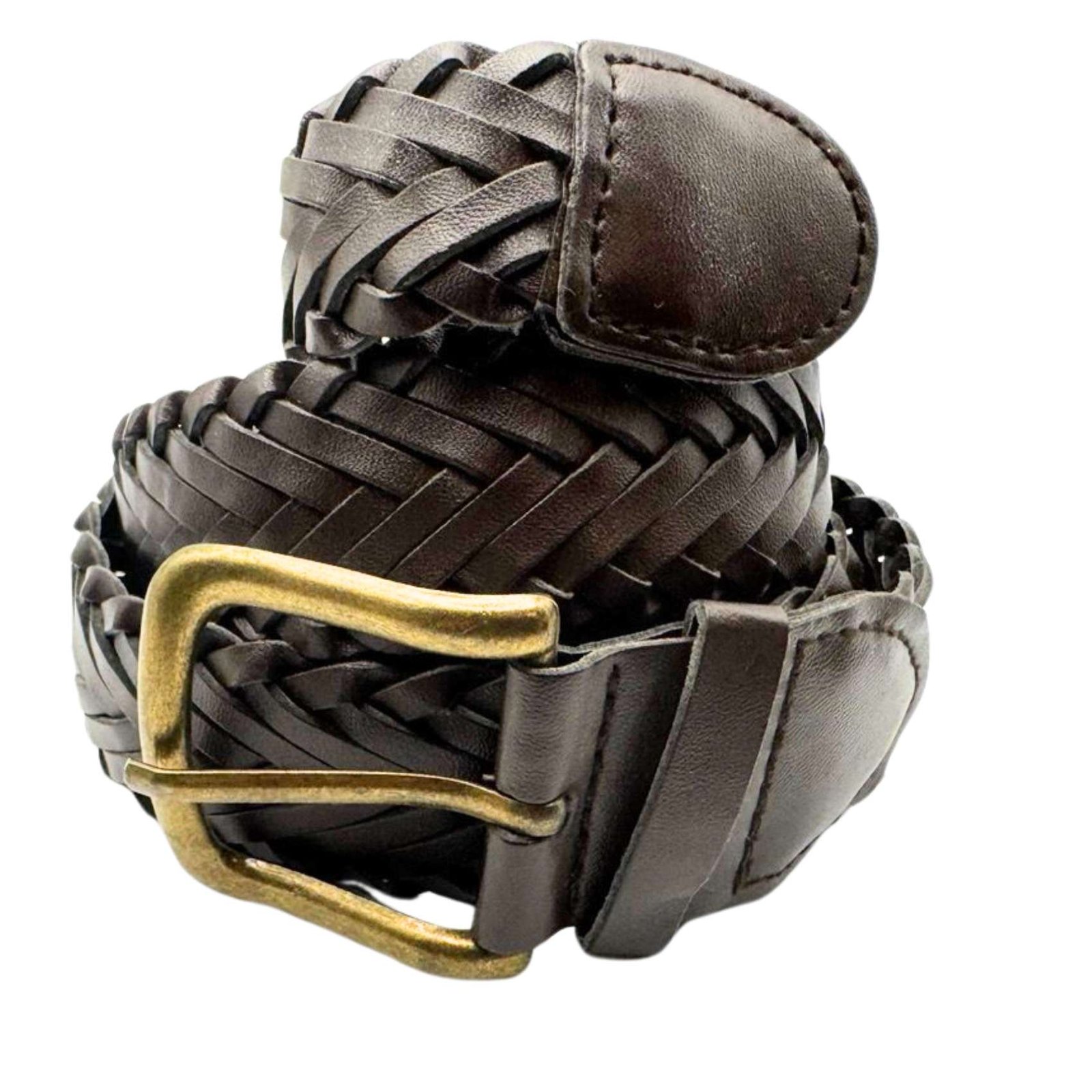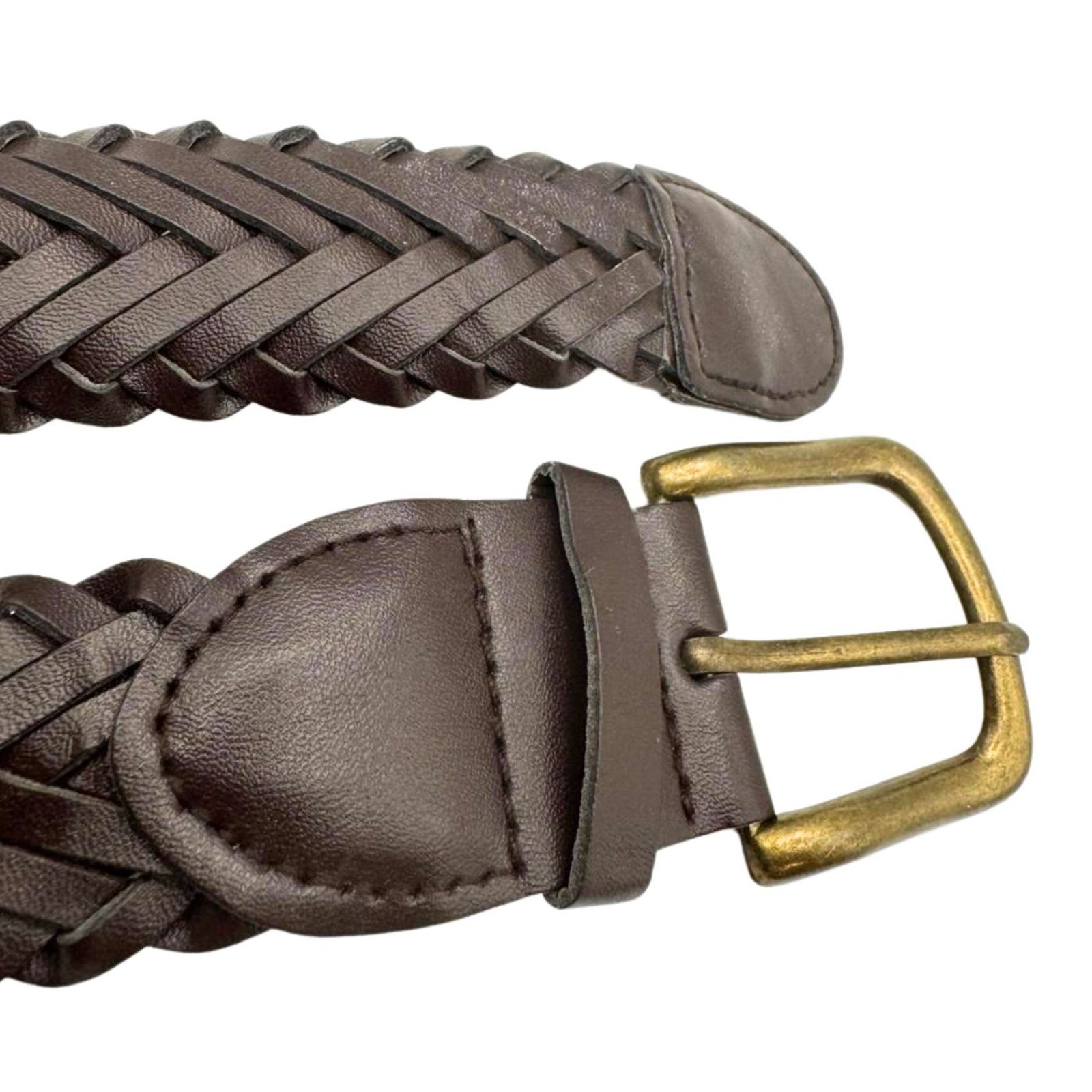 Original Vintage Genuine Braided Leather Braided Brown Belt Buckle Length 62"