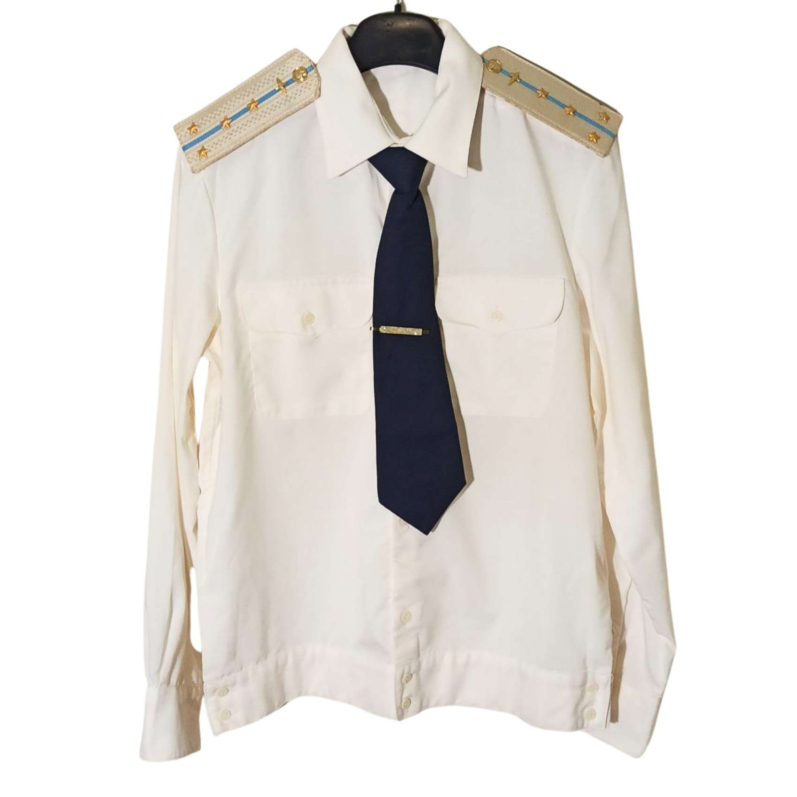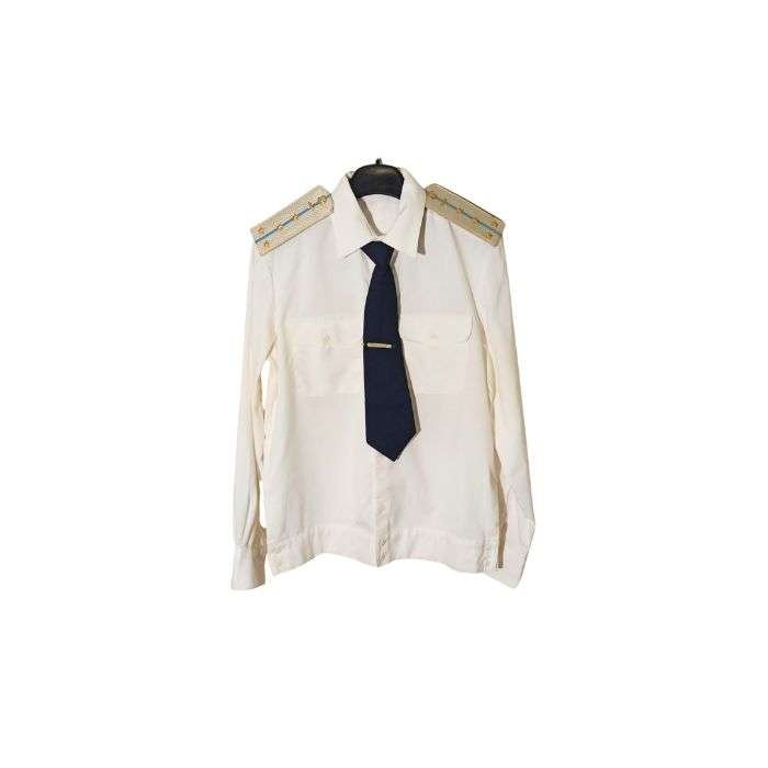 Original Vintage Russian/Soviet Military Officer Parade Shirt and Tie from the 1980s, used by officers of the Red Army during the late Soviet period. This uniform set includes a formal parade-style shirt and matching tie, reflecting the standard dress regulations of the era.