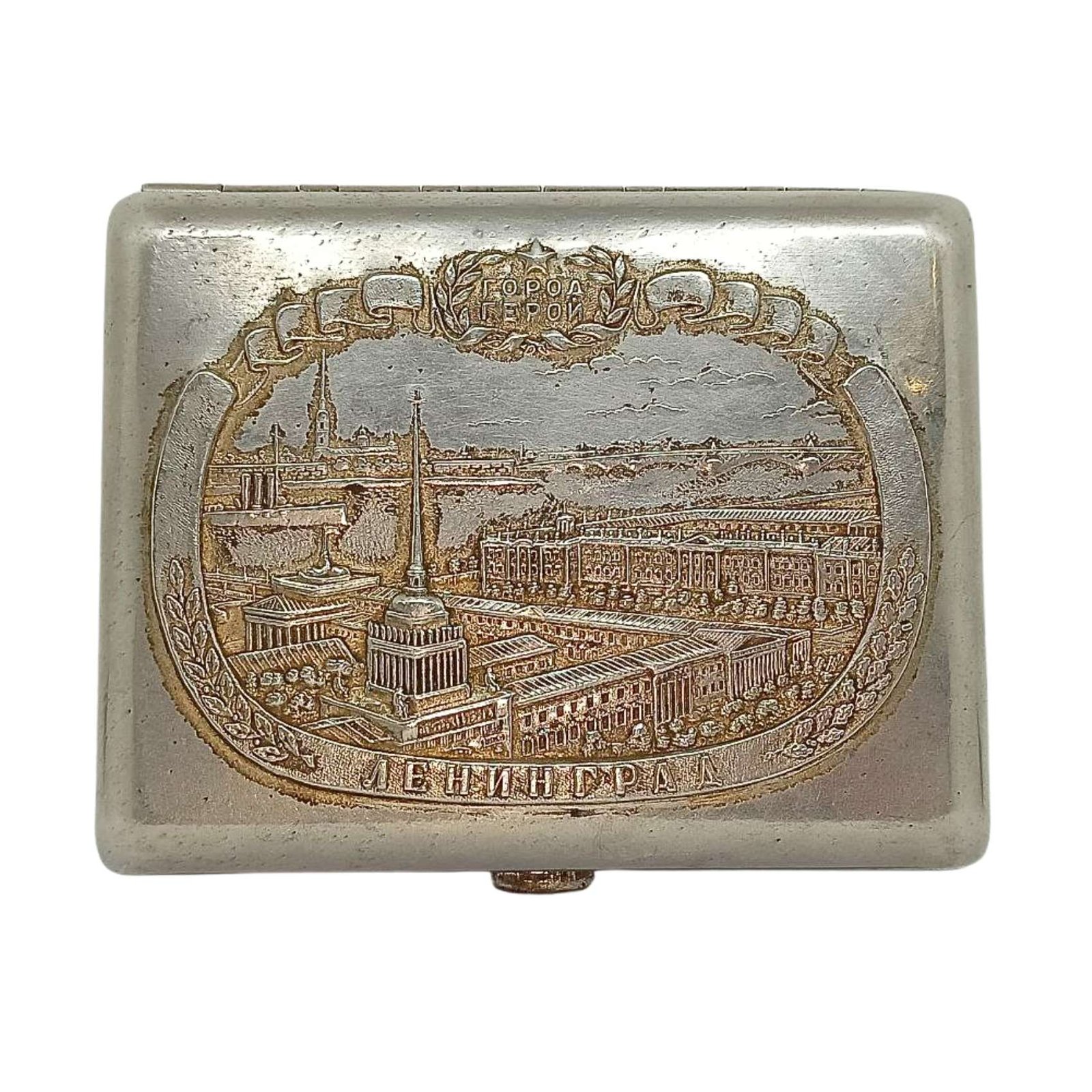 Vintage Soviet Metal Cigarette Case Box Leningrad City - Hero 1970s USSR
